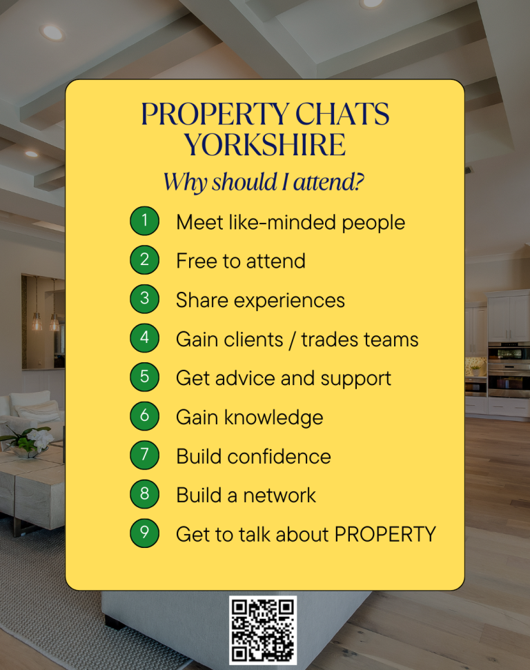 Come and join the fun, book your free place, just scan the QR code on our Property Chats Yorkshire page, or book on the link below.
